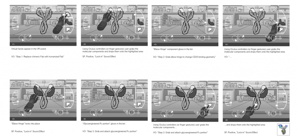 Through discovery and development we worked very close with leading medical researchers, executive stakeholders and subject matter experts (SMEs) to be clear on the cascade events and the overall technical accuracy of the interactive story. Once the scripts and storyboards were approved we worked with experienced technical artists and animators to develop and bring the scenes to life. This effort paired with traditional post production (color, compositing, edit, sound engineering) paired with programming and Q&A brought all the pieces together to create a 3-5 minute technically accurate custom VR program for Oculus Rift.